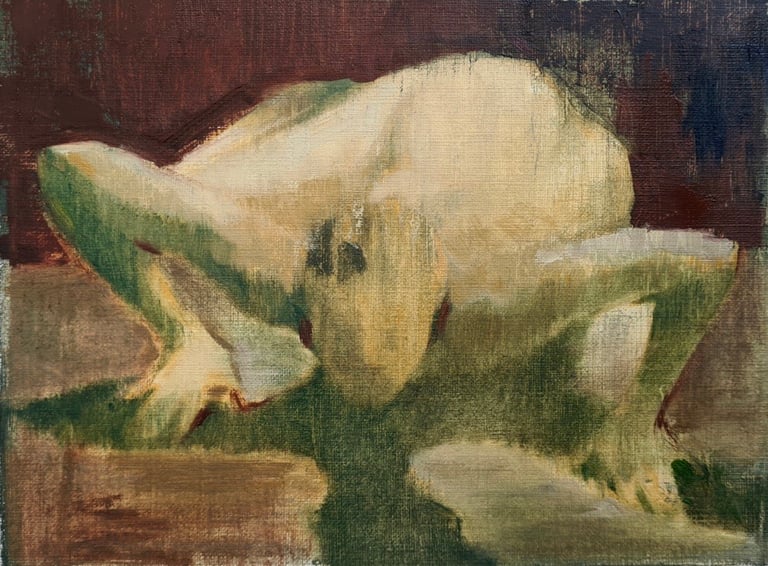 Peas of mind, 2025. Oil on canvas – 34 x 27 cm